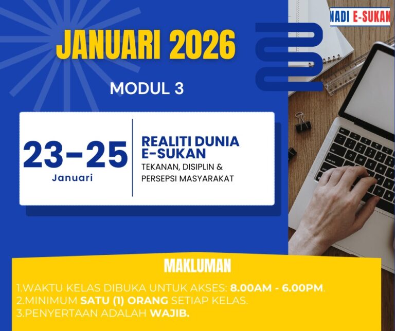 Kelas Kesedaran E-Sukan – Modul 3: Realiti Dunia E-Sukan – Tekanan, Disiplin & Persepsi Masyarakat