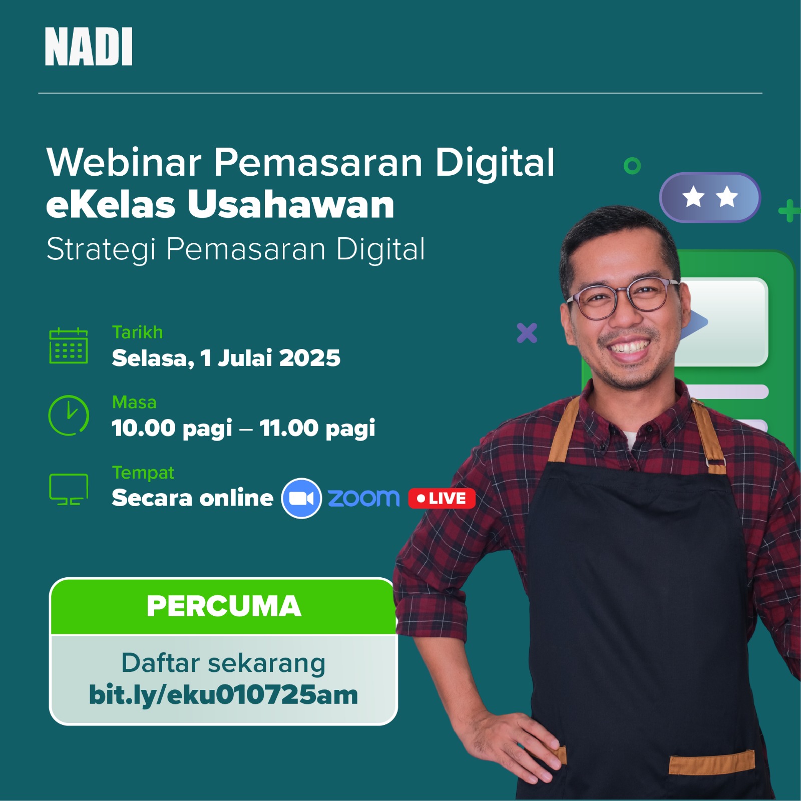 Webinar eKelas Usahawan – AI Untuk Mencipta Kandungan TARIKH : 4 JUN 2025 MASA : 10.00 am – 11.00 am LOKASI : NADI Taman Kesedar Jaya PESERTA : 1 orang KELAS : NADI Pembelajaran Sepanjang hayat Tujuan Memberi pendedahan kepada […]